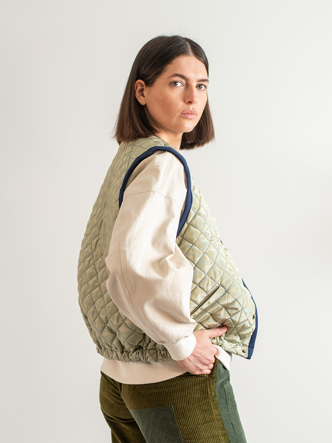 Sage Cotton Moiré Quilted Vest